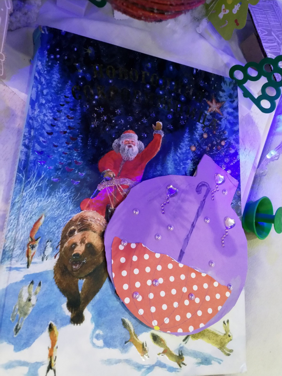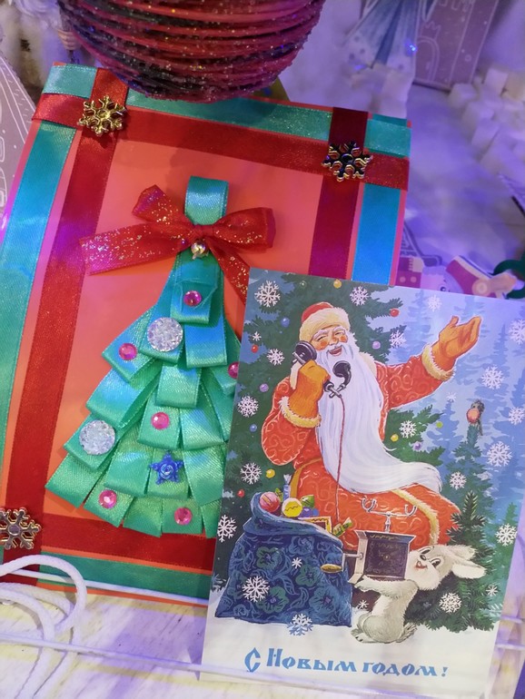 Оксанка даже открытку сделала своими руками, она у нас на ёлочке теперь живет)