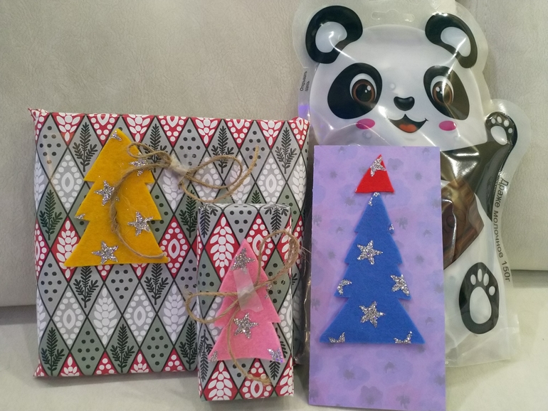 Ну а дальше я все таки открыла, а там просто россыпь подарков. Решили с Колей украсить открытки для бабушек и дедушек этой красотой