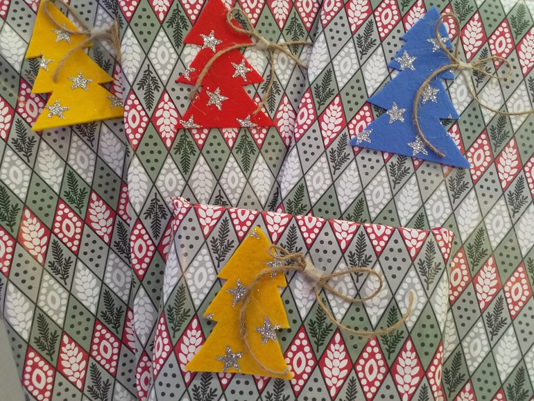 Они с мальчишками нам сделали вот такую красоту, да еще и на магнитах, теперь и холодильник наш украшен (вперые!!) к НГ!! Наташа, спасибо большое, оооочень приятно!!!