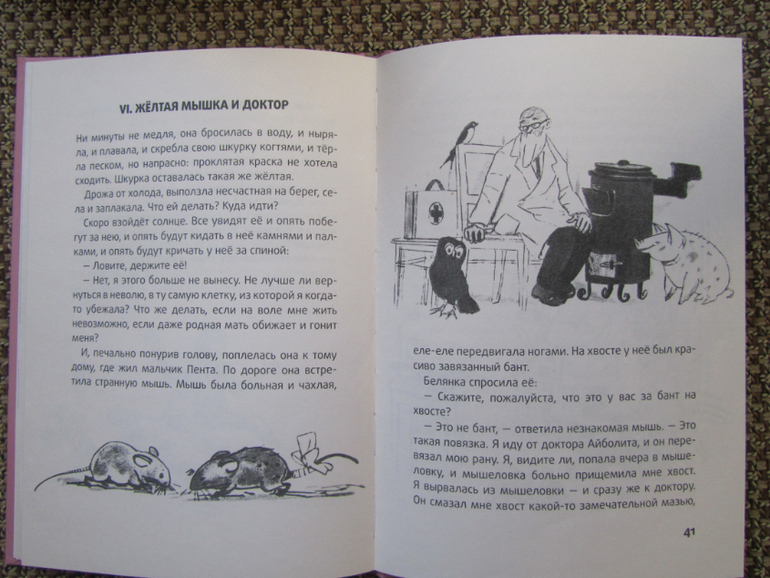 В сказке про несчастную белую мышку, которой из-за своей яркой расцветки приходилось всё время прятаться от хищников, появляется известный всеми нами персонаж Айболит, в доме которого мышка и находит приют