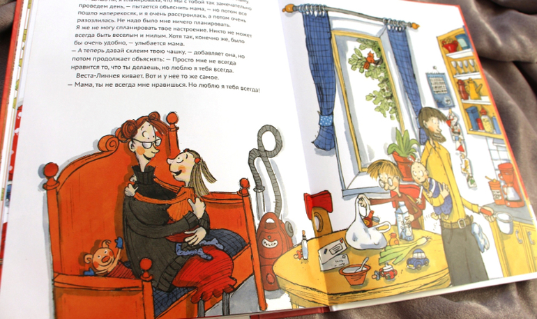 Потом они обе полдня ходили во взвинченном состоянии, из-за чего снова ссора. Но самое главное, что два родных человека обязательно должны помириться. И кому как не взрослому делать первый шаг. В этом смысле книга невероятно важную мысль лично мне напомнила - ведь так трудно найти в себе силы вспомнить, что здесь ты взрослый, когда обида на поведение вредины захлестывает.