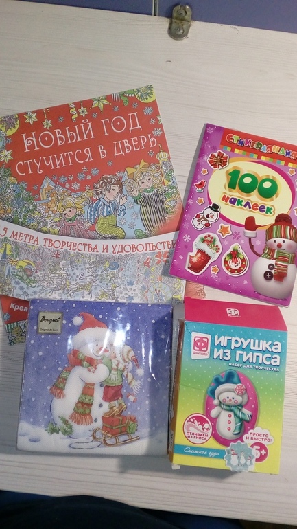 - набор для изготовления игрушки из гипса - мы с дочкой много всего переделали, но из гипса еще не доводилось! Наклейки - мне для фото досталась уже пустая обложка, все наклейки уже на своих законных местах( Новогодняя раскраска-раскладушка! Занимательный журнал для творческих личностей - интересная штука! И раскраски, и мандалы, и задания... Развивающий плакат-игра Правила дорожного движения - видимо, предназначалась для Макса, но ее сразу схватила Лида! На НГ Максу подарили гараж с дорогой и дорожными знаками, и Лида прямо заинтересовалась этой темой. Так что вряд ли Макса эта игра дождется( Книга Буквоград - я такую покупала несколько лет назад, но тогда гам было рано, и я её кому-то подарила. А сейчас самый подходящий возраст для этой игры! Журнал 3/9 царство - ни разу не читали, очень хорошо что появилась возможность познакомиться с ним.