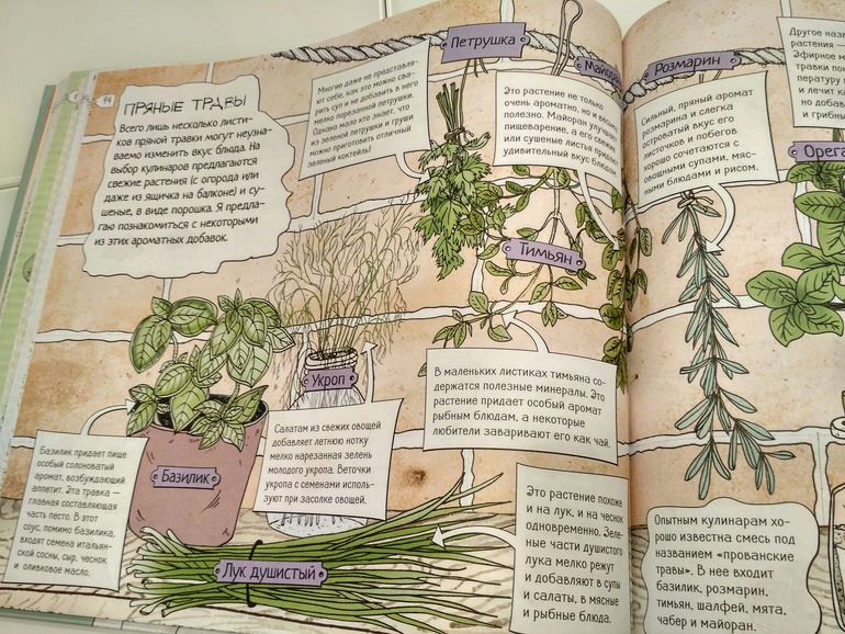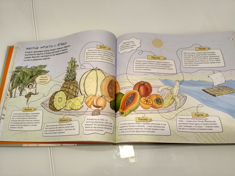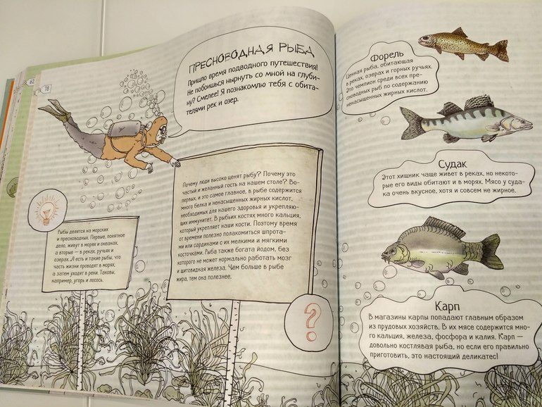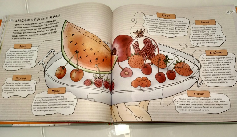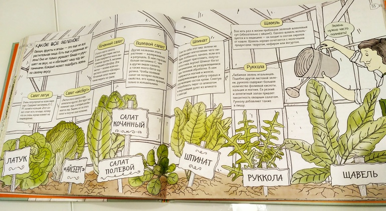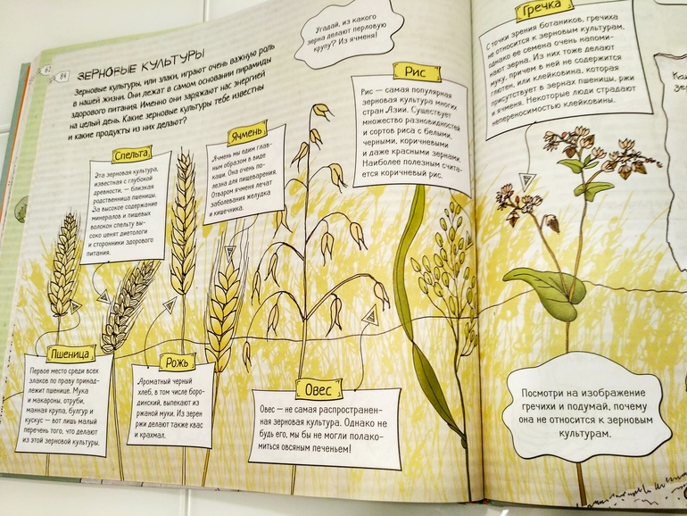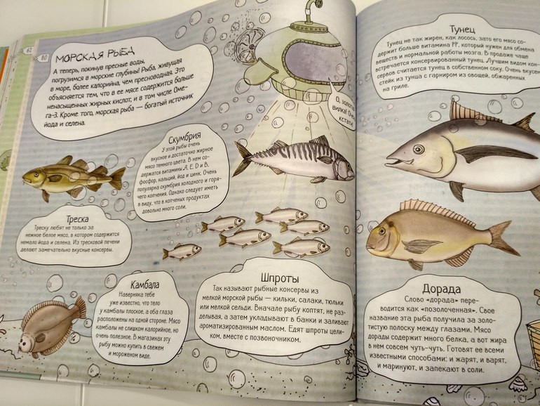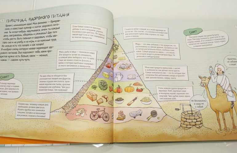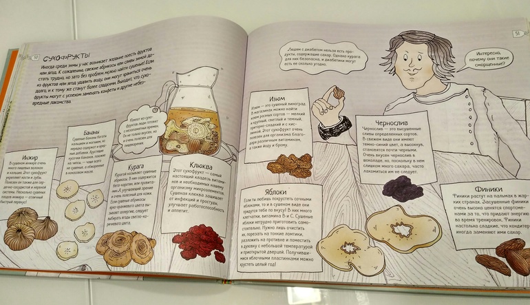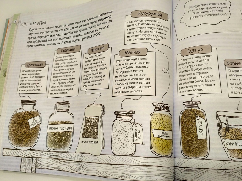 Как устроена еда? - понравилась структура книги, на каждом развороте освещена небольшая тема или раздел о группе продуктов, все кратко и по существу. Написано интересно, даже я многое узнала.