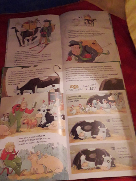 Я специально искала забавные книжки-картинки. Не прогадала. Книга за раз. Читал, даже не останавливаясь, хотя мы частенько разбиваем на несколько частей. Хотел узнать, чем всё закончится. Итого-по книге в день. Больше всего понравилась история про переполох.