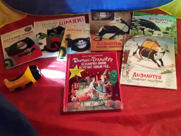 Моя новогоднюю про Шмяка начала читать: по два-три предложения пока)) Главное ребенок доволен!