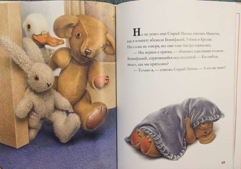 8. "Приключения Мишки и его друзей". Чудесная и добрая книга с отличными иллюстрациями. Игрушечные герои спасают друга с пыльного чердака, медвежонок ищет свои штанишки, пекут пироги, играют в прятки, делают снег из подручных средств.