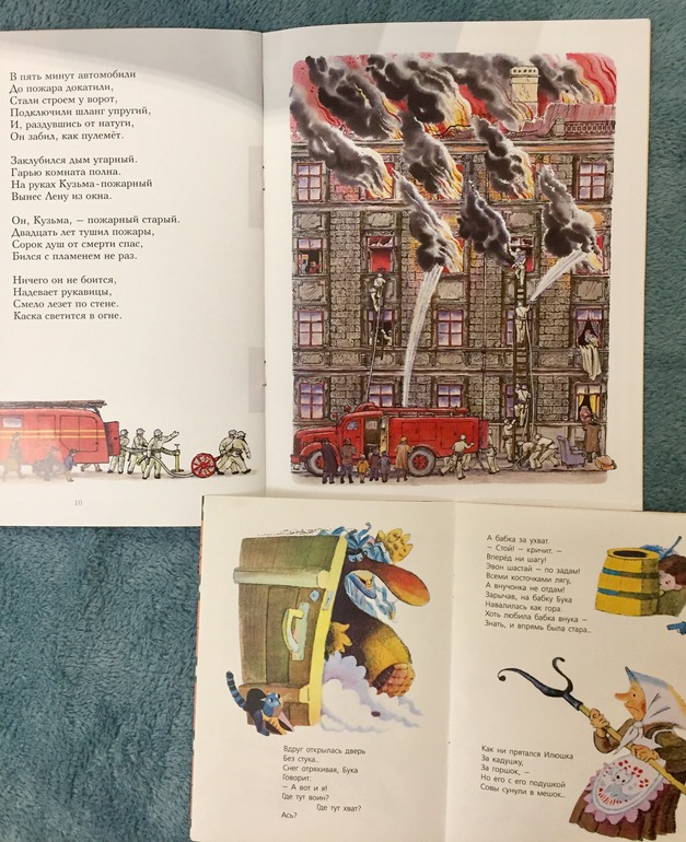 Тема пожарных не отпускает весь год. Тушим все и вся. В 3-года шокировали бабушек у подъезда декламированием полного произведения. Сорвали овации, надо сказать.