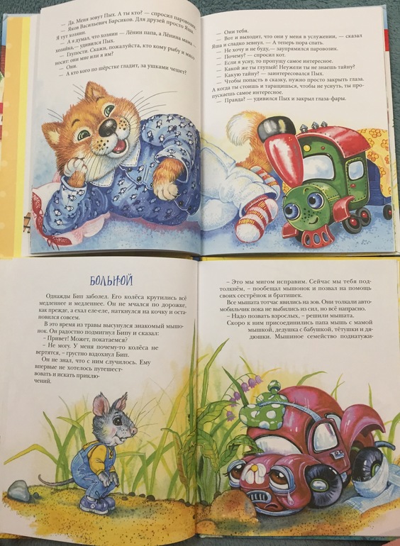 В книге "Автомобильчик Бип" ребёнку приглянулась история о том как Бип заболел и как ловко его папа вылечил. Читали по кругу эту историю несколько раз подряд.