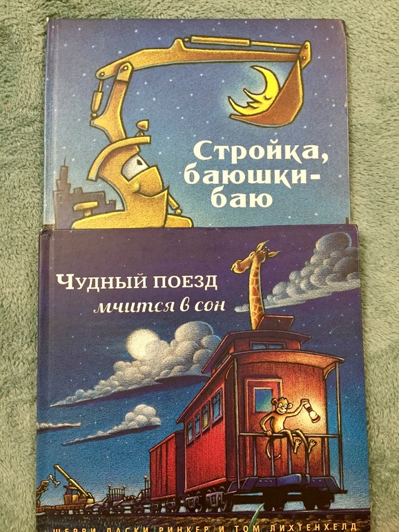 2. "Чудный поезд мчится в сон" и "Стройка баюшки-баю" - хиты с 1,5 лет. Не спускались в рейтинге и в этом году. Одну из книг выделить невозможно. Читались они всегда в паре. Но, шепну на ушко, про поезд маме нравится больше.