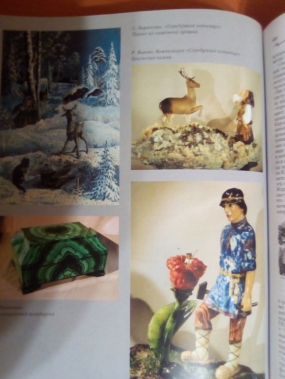 Книга толстая, большого формата, информации о писателе в ней в избытке. Но меня, как любительницу детских книг, больше привлекли в ней цветные вклейки, на которых иллюстрации к сказам, сувениры по их мотивам: