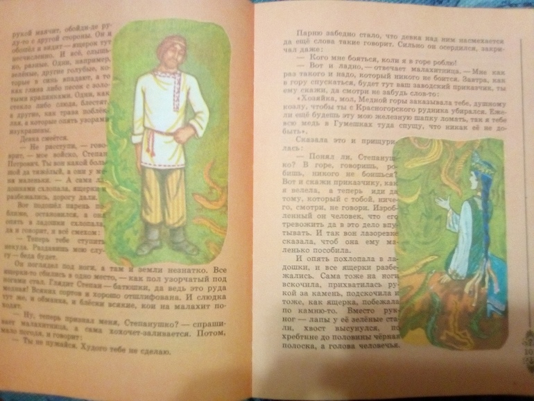 В нашем городе (а может быть, и во всей области) есть, на мой взгляд, замечательная традиция - выпускникам школ дарят на память книги. Помню, когда я выпускалась, то нам дарили Купера "Зверобой". Но это были тяжелые 90-е, книги были скромные, но оттого не менее интересные. А вот эту красивую, богато иллюстрированную "Малахитовую шкатулку" дарили выпускникам лет 10 назад. Ценность её не только в хорошей полиграфии, но и в содержании - это книга путешествий со сказами Бажова. Каждый сказ сопровождается кратким описанием реального маршрута по тем местам Большого Урала, о которых в сказе идет речь. Буквально на днях обсуждала с мужем возможность путешествия по подобному маршруту, может быть когда-нибудь оно осуществится и я напишу здесь отчет по такому литературному маршруту 🙂. А пока несколько фото страничек: