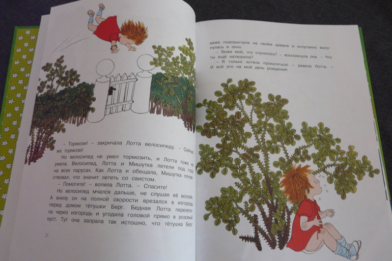 Это наша первая "толстая" книга .Ребенка заинтересовал рисунок,где Лотта летит на велосипеде через забор :) Попросил прочитать.Книгу перечитывали несколько раз.Вторая книга про ЛОтту не пошла пока,возможно, потому что иллюстраци другие...Куплены многие книги А.Линдгрен,но пока ждут своего часа.