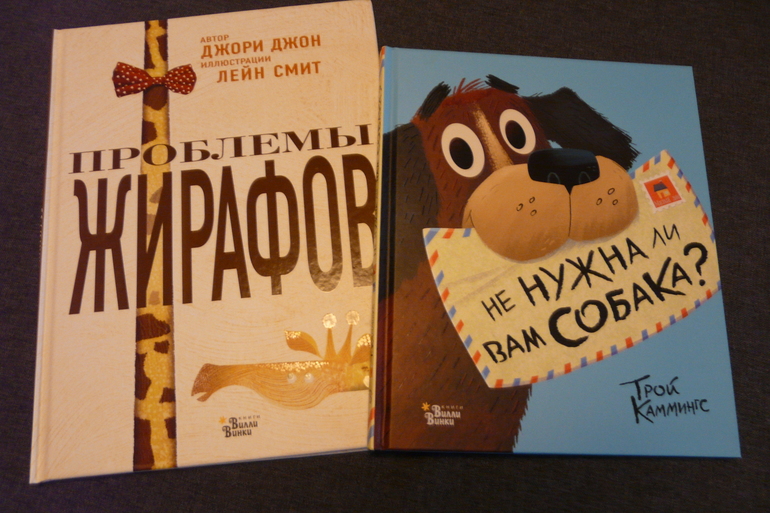 Объединила эти две книги.Обе книги-картинки .Веселые ,яркие,короткие ...НО с большим смыслом .Очень много чего можно обсудить после прочтения! Перечитываем постоянно.Ребенок "читает" на разные голоса книгу про жирафов :)
