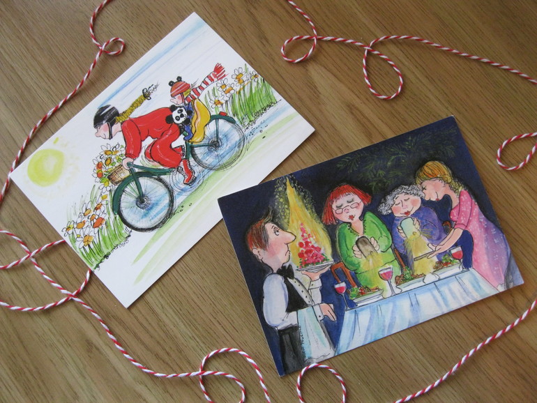 А эти открытки нарисовала финский художник и иллюстратор детских книг Вирпи Пеккала, любовью к которой я пылаю уже не первый год.