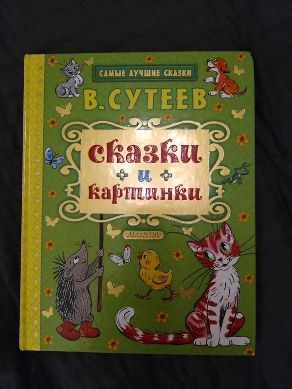 Наконец то Варя начала с удовольствие слушать Сутеева. Эту книгу нам подарили в 1.5 года и я ей периодически безуспешно пыталась читать. Начали читать вместе в прошлом году вместе с Ариной. И читаем теперь очень часто. Самые любимые - про колеса, про яблоко и про петуха. Иллюстрации чудесно подходят к тексту. Я абсолютно не помню Сутеева из своего детства, но сейчас мне он очень нравится.