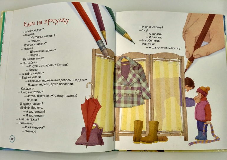 Даша любит" Прогулку " и" Купание ", потому что это не только забавные строки, но и все можно показать на себе, или пусть лучше мама показывает.
