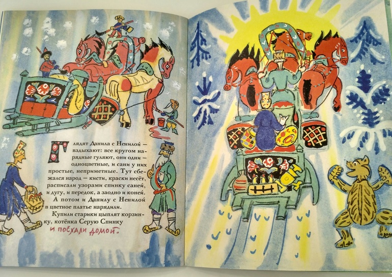 Колоритные иллюстрации Мавриной делают книгу особенной, не похожей на другие и в тоже время родной, близкой. Сюжет динамичный, герои сменяют друг друга, есть кого поразглядывать. В общем при чтении скучать не приходится!