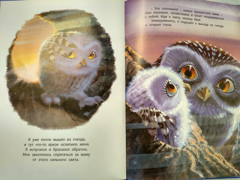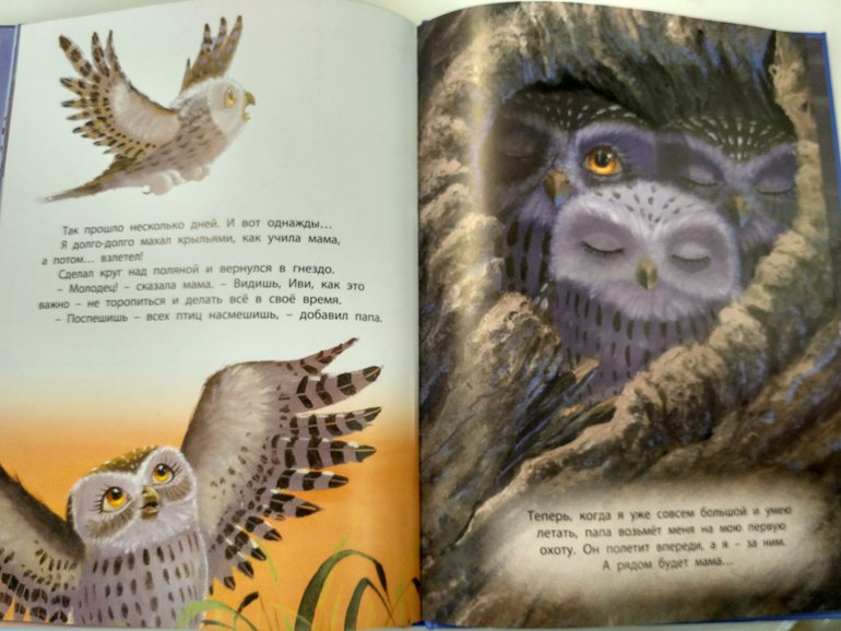 Но потом совёнок Иви научится летать, и папа возьмёт его на охоту, папа полетит впереди, за ним Иви и рядом будет мама!