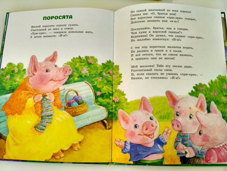 В конце книги есть несколько разворотов совсем коротких слишком, так вот мы любим про поросят, которые не умеют говорить "хрю - хрю"