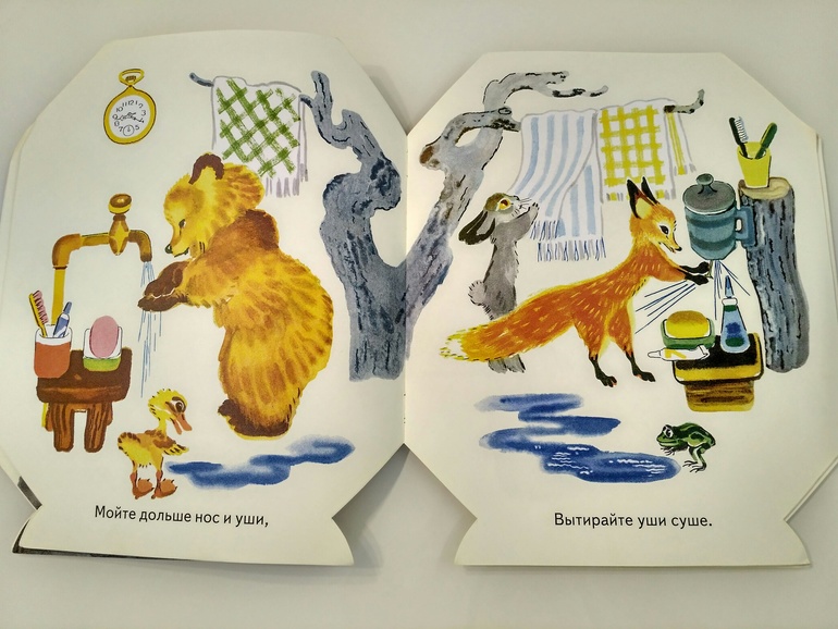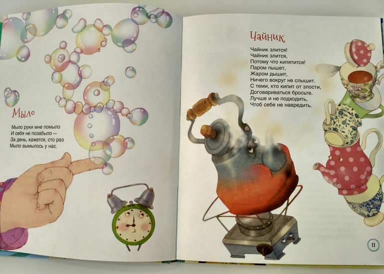 4. - Даша эту книгу называет "Тик - так", стихотворение Генриха Сапгира тоже знает наизусть, любит его рассказывать, когда я переворачиваю страницы. И ещё очень нравятся ей рисунки, всегда их очень внимательно рассматривает, следит за всеми героями и задаёт вопросы "Почему мышка не чистит зубы?? И почему она не делает зарядку??"