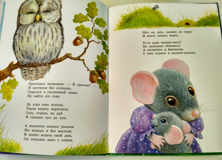 Сказку про умного мышонка предпочитает быстрее дочитать, что бы в конце увидеть, что маму малыш все таки нашёл.