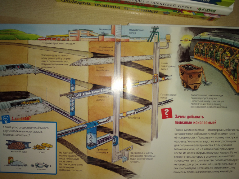 Книга перекочевала из прошлогоднего топа. Второй год в любимчиках. Да и не удивительно, с такой точной и подробной прорисовкой всех деталей. Как и другие энциклопедии, читает её детям папа. Но сын и сам с ней периодически зависает. Самый любимый разворот с гигантским самосвалом.