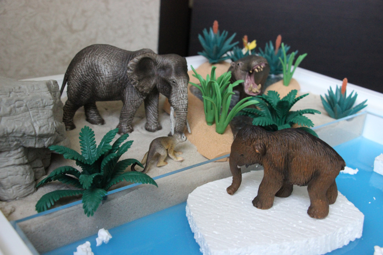 Из Книги Сказки-Мультфильмы, конечно же, любимая история Мама для мамонтенка. Тут мама решила порадовать дочку. Сделала очередную сенсорную коробку на световом столе. Пара часов отдыха маме была обеспечена.