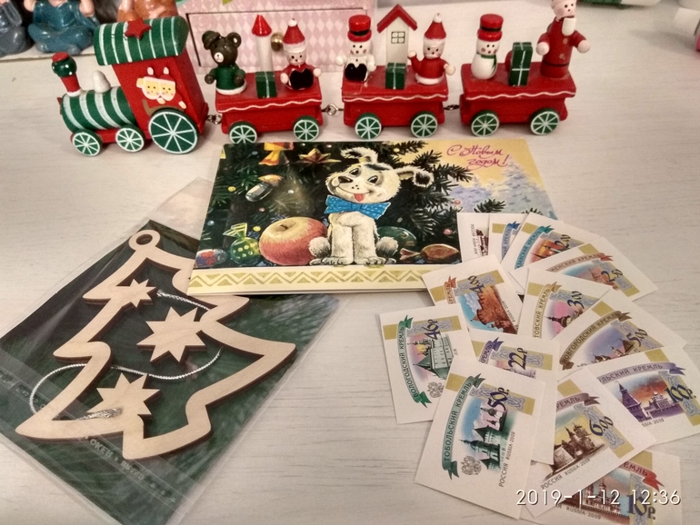Вот это я понимаю марки!А щенок с открытки какой задорный.И деревянные игрушки на елки стали теснить другие.Тоже нравится их "творить".Поздравляю,Наташа!!