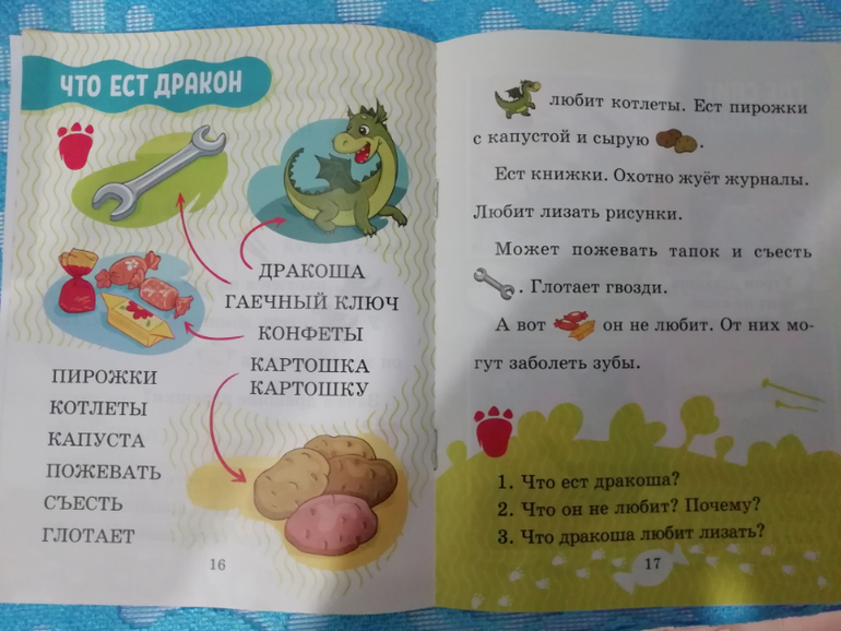 Затем читали про Дракошу. Буквы знаю-сам читаю. Читал с интересом. Но только когда я просила.