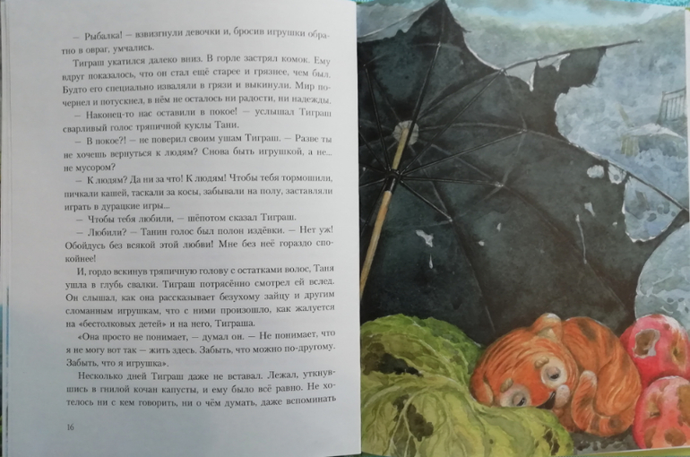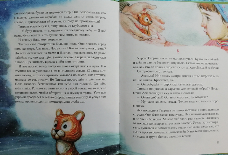 Книга для сына оказалась очень тяжелой. Выброшенная на свалку игрушка - резиновый тигр - проходит через нелегкие испытания. Его бьют ногами мальчишки, он мерзнет на свалке, он чудом спасается от ножа (его хотели повесить на машину) и не смотря ни на что не теряет веру в людей, ищет себе новую хозяйку. И находит ее)))