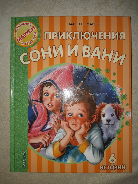 Эта книга о юных путешественниках Соне и её брате Ване, дочку увлекли путешествия брата и сестры, подкупило то, что главную героиню зовут также как и её - Соня, а ещё в книге чудесные иллюстрации самого автора Марселя Марлье.