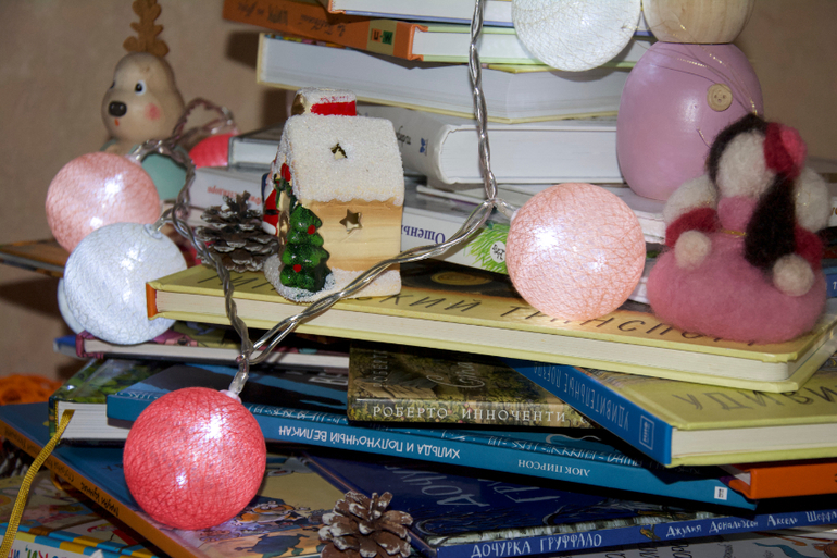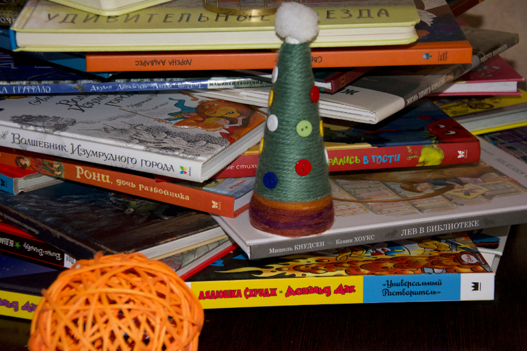 Хочу пончик :( А лучше два :( Юль, одолжи пончик, или два, я знаю, у тебя всегда есть что-то вкусненькое )) А то муж сказал, что неделю мне ничего покупать не будет. Я свою книжную ёлко-стопку убрала уже, на твою полюбуюсь. Нашла Тутту Карлсон, ее еще не называли вроде. Фонарики какие симпатичные у тебя на книжной елке!