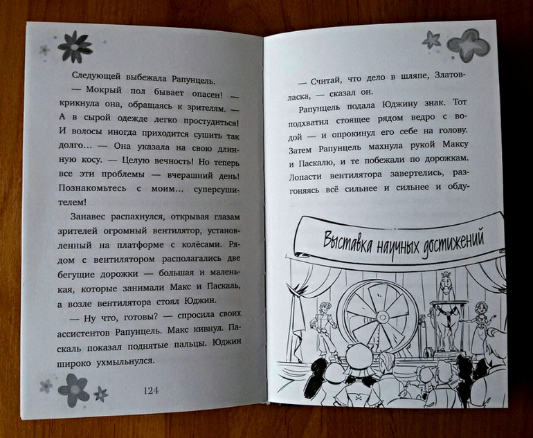 Только после этих слов я вспомнила, что краем глаза тоже видела этот мультсериал с угловатыми персонажами. В нем к Рапунцель опять вернулись ее длинные белокурые волосы и она вместе с друзьями пытается на протяжении многих серий разгадать эту тайну. Правда, в данной книге мы эту тайну не раскроем. Зато прочитаем две другие интересные истории, которые особенно понравятся маленьким любительницам отважной принцессы.