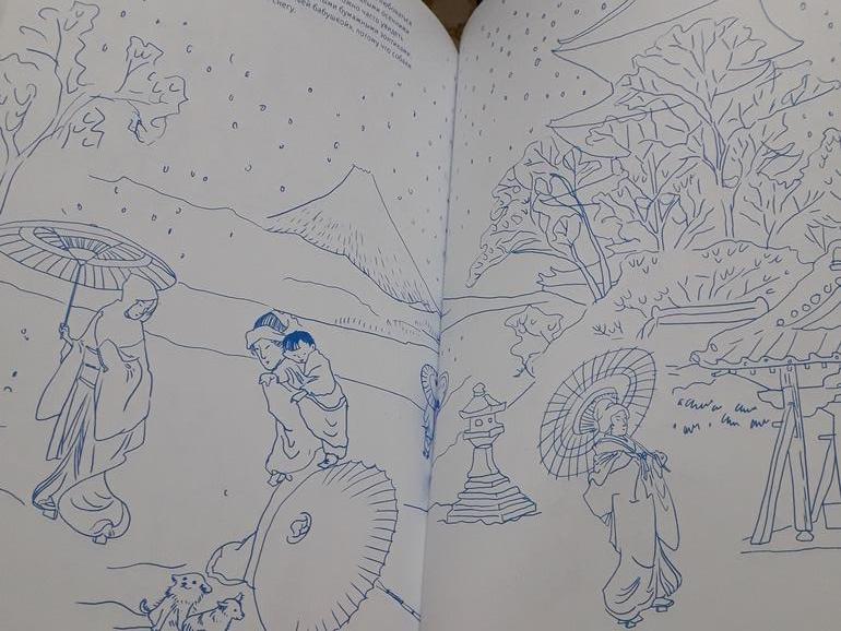 Или вот снежный пейзаж Японии с комментарием, что японцы часто называют снег "собачьей бабушкой", потому что в нём любят валяться собаки.