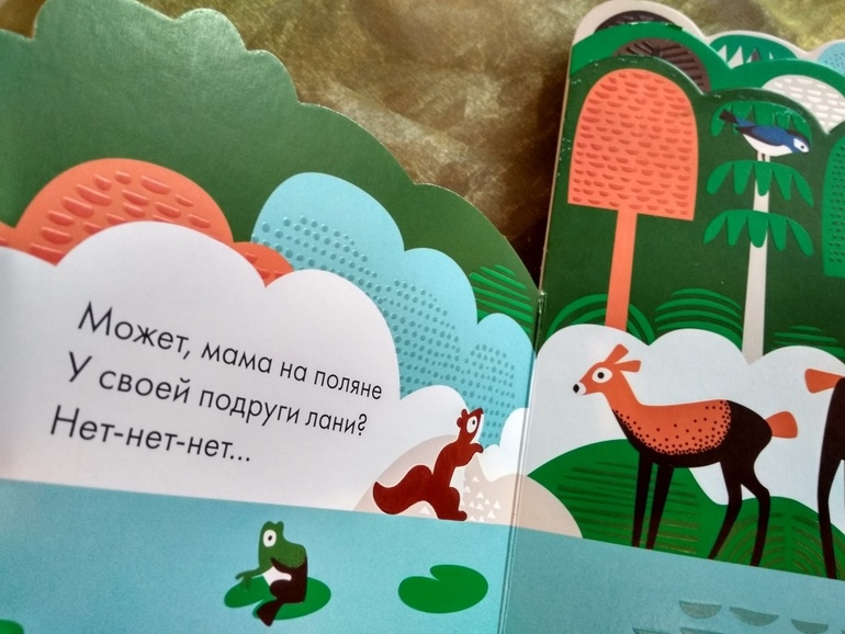 А когда книга, кроме яркого изображения, привлекает еще фигурной вырубкой, что дополнительно отличает ее от множества прямоугольных обложек, в переизбытке окружающих ребенка в библиотеке, это не может не радовать.