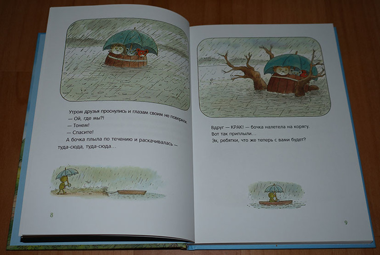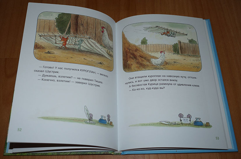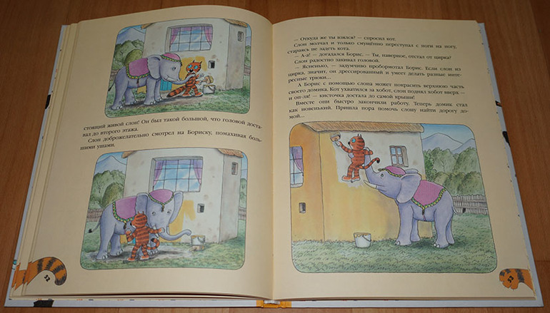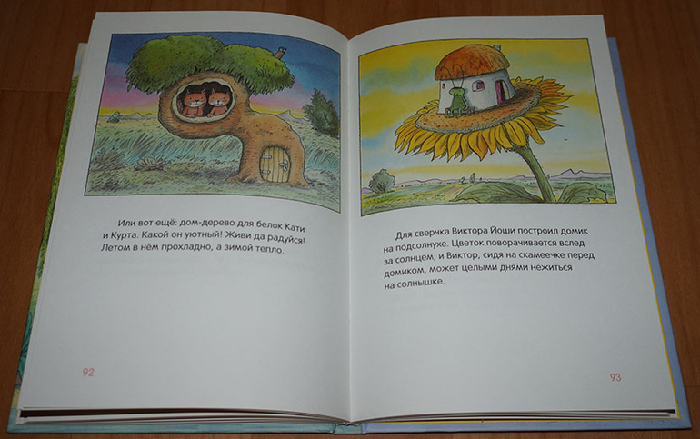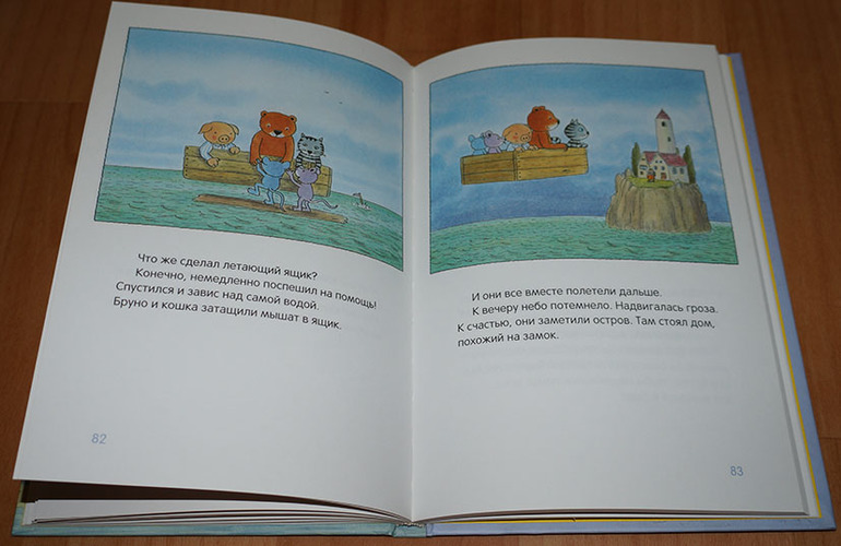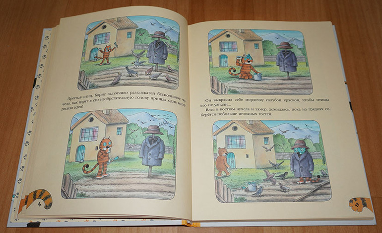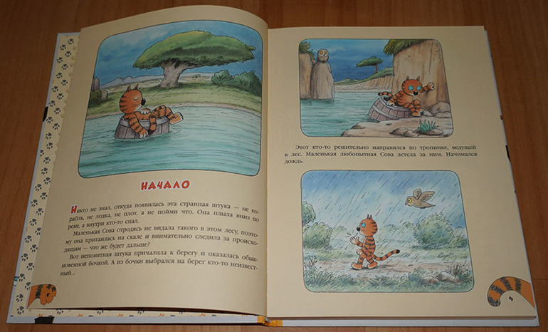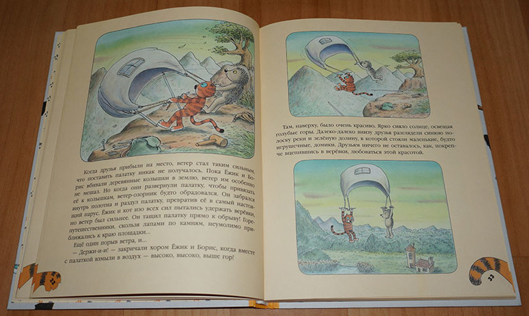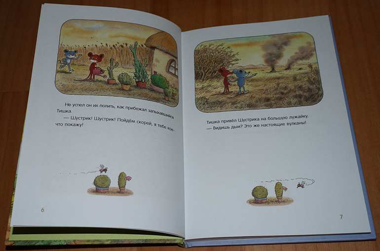 Текста в этой книге больше, чем в предыдущих. За счет этого истории становятся более сложными, развернутыми и многогранными. Очень увлекательно для старших дошкольников и младших школьников. Вот, например, несколько разворотов подряд, с самого начала истории.