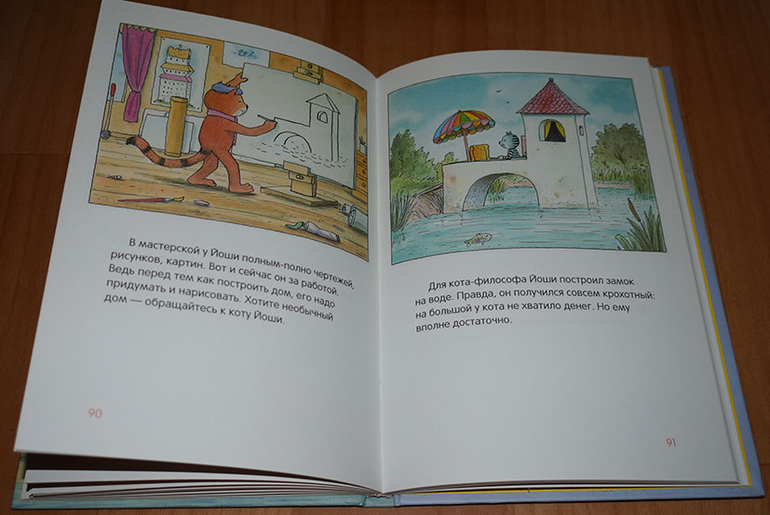 Кот Йоши, герой следующей истории, - весьма талантливый архитектор и дизайнер. Он создает такие великолепные дома для своих друзей, что не восхищаться ими просто невозможно! Чудеса да и только. Каждую страничку с великолепными домиками можно изучать очень долго, восхищаясь удивительно продуманным функционалом той или иной части необычной постройки.