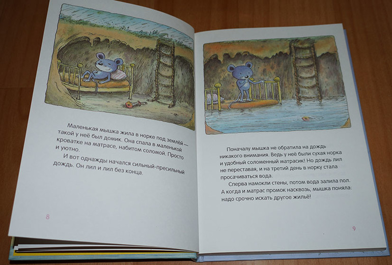 История про мышку начинается с сильного дождя, который затопил родную норку зверька.