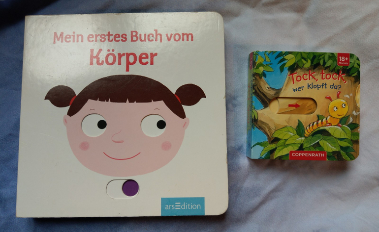 Недавно докупила пару книжек с двигающими детальками, и самое время, сына они увлекают. По-моему, правда, сам процесс гораздо интереснее, чем картинки, в нем задействованые😅