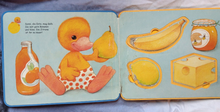 Любимая страничка желтая, а как же еще, если любимая еда это банан и сыр)). А может наоборот...насмотрелся на банан и сыр, и любит их теперь пламенной любовью.