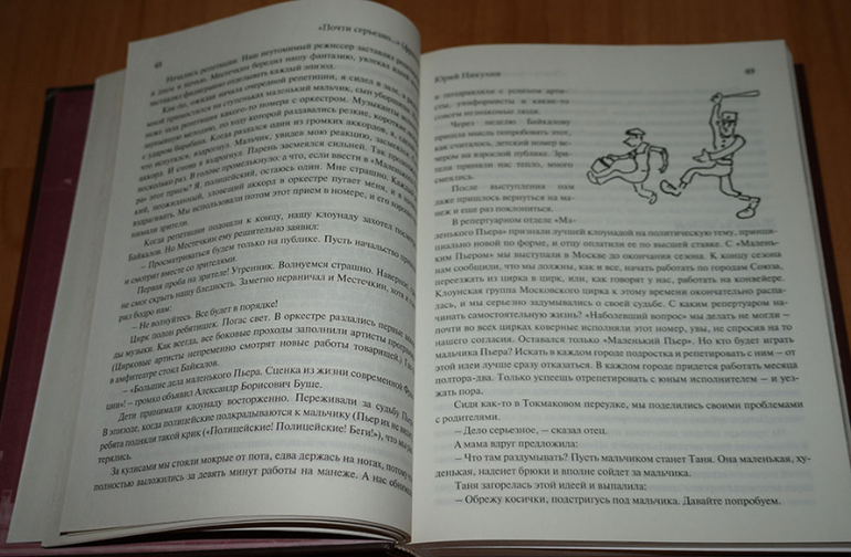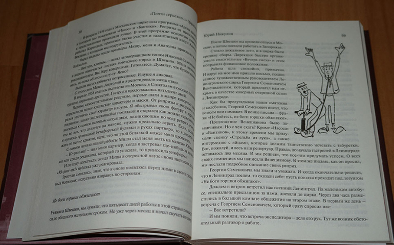 К сожалению, лишь очень небольшая часть из книги "Почти серьезно" вошла в книгу о цирке на Цветном бульваре. А книга просто замечательная, с воспоминаниями о гастролях, о знакомых артистах, и еще о многом другом. Написана она с юмором и жизнелюбием, великолепным языком. Почти 700 страниц! Поэтому очень рекомендую найти и прочитать полностью этот шедевр.