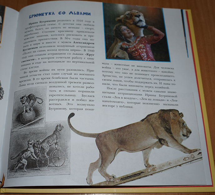 И конечно же в книге упоминаются самые яркие представители нашего, советского цирка. Укротительницы Ирина Бугримова и Маргарита Назарова. Что может быть эффектнее хрупкой женщины на фоне свирепых хищников?