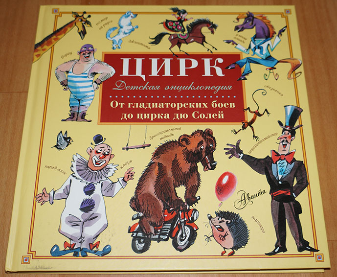 Яркая и большая детская энциклопедия о цирке с фотографиями и забавными рисунками.