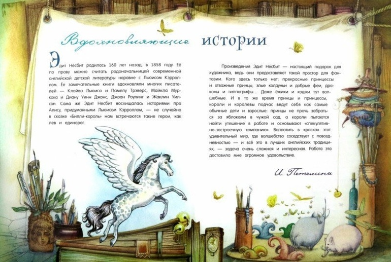 Добрые и ироничные сказки Эдит Несбит написаны в лучших традициях английской детской литературы. Чудеса здесь перемешаны с привычными и хорошо знакомыми вещами. Драконы, волшебные книги, злые колдуньи, единороги, гиппогрифы - существуют рядом с парламентом, футбольной командой, полицией и почтой. Подробные и достоверные иллюстрации Ирины Петелиной создают целый волшебный мир, замечательно отражающий замысел знаменитой английской сказочницы.