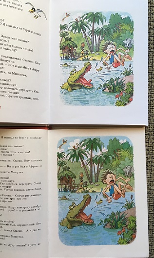 Старая книга немного тоньше, чем переиздание за счет величины шрифта. Количество рассказов такое же, но расположены в разном порядке. В новом издании иллюстрации некоторые немного размытые, зато их побольше. Добавлены некоторые мелкие картиночки.