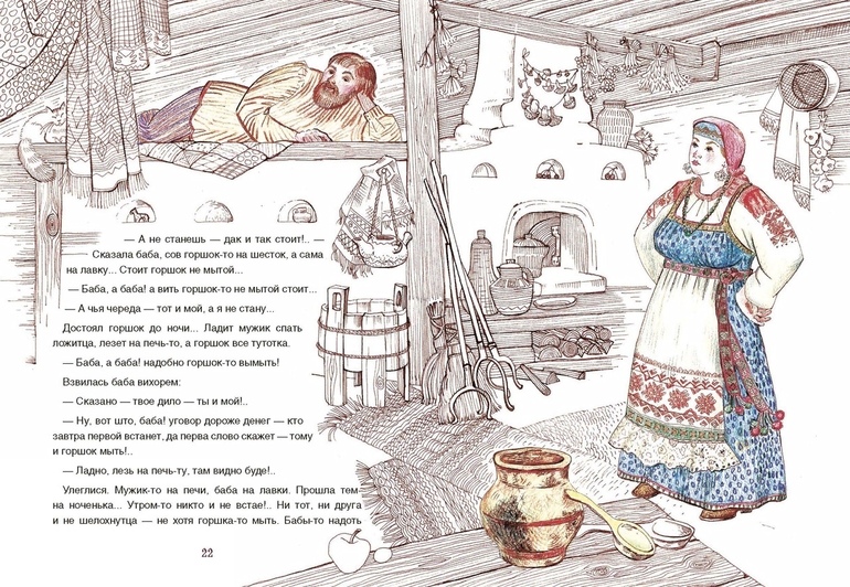Сказки, представленные в книге, записаны со слов крестьян Тихвинского, Устюженского и Боровичского уездов Новгородской губернии в начале XX века собирательницей фольклора Марией Михеевной Серовой. Бережная запись сохранила красоту народного говора Северной Руси и крестьянский юмор. Издание богато проиллюстрировано и дополнено картой-игрой, которая познакомит детей с Новгородской землей.