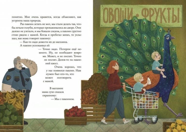 "Павлин - это здорово!" - думают дети. "Павлин - это очень большая птица", - думают мамы. И мамам павлин ни к чему. У них своих забот хватает. А детям он очень даже нужен! Как детям без павлина?