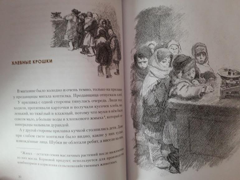 Как вы уже поняли, книгу я очень-очень рекомендую. Она без травмируюших и жёстких деталей, при этом без сюсюканья и заигрывания. Для первых бесед не только о блокаде, но и войне в целом.