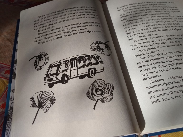 Я читала долго. У меня не получалось сразу, нахрапом, читать все подряд. Начало-то, как положено, да - я читала про желтый автобус, который, переваливаясь, едет по степи через поля красных маков туда, где в небольшой станице в небе одновременно висят солнце и луна и на скамейке под старым абрикосом сидят и ждут автора те, кого он любит. Ждут его историй, и сами они - его истории. Среди тюльпанов и маков, цветущих кустов сирени у облезлого штакетника - все те, кого он называет "мои". Его герои.