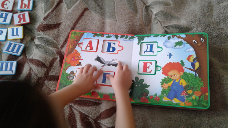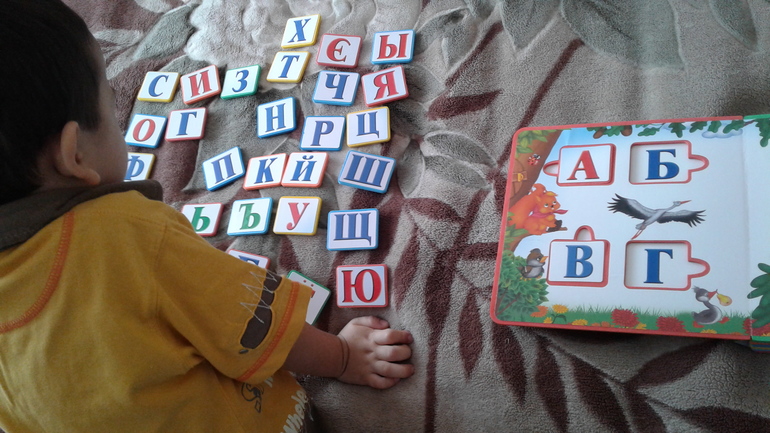 Здорово для малышей, которые изучают азбуку! Мы уже правда азбуку знаем, и даже чуть-чуть читаем простые слова по слогам, ☺️ но Амиру понравилось искать и вставлять буквы!
